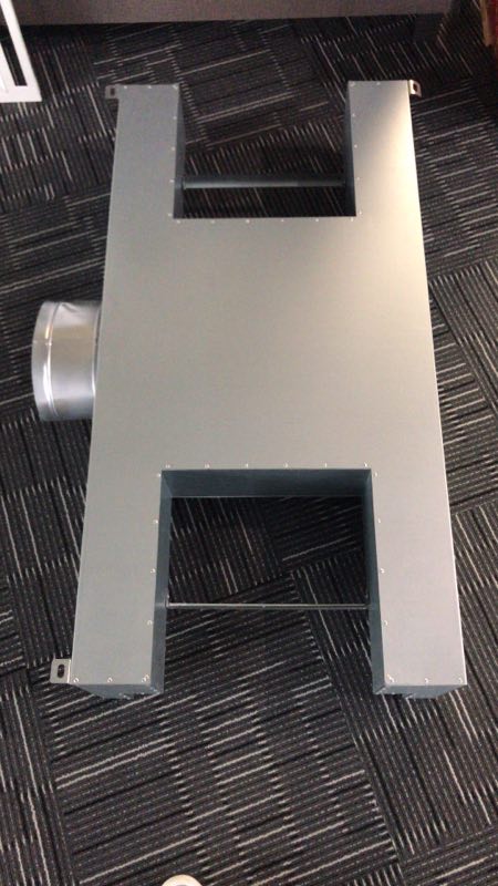 2、风口连接箱采用厚度不低于1.0mm钢板制作,内外表面喷塑处理, 用作送风的每边需有不小于25mm 的条縫。进风口设置与软管连接的短管,短管做卡槽与软管采用卡箍连接,内置手动风量调节装置。